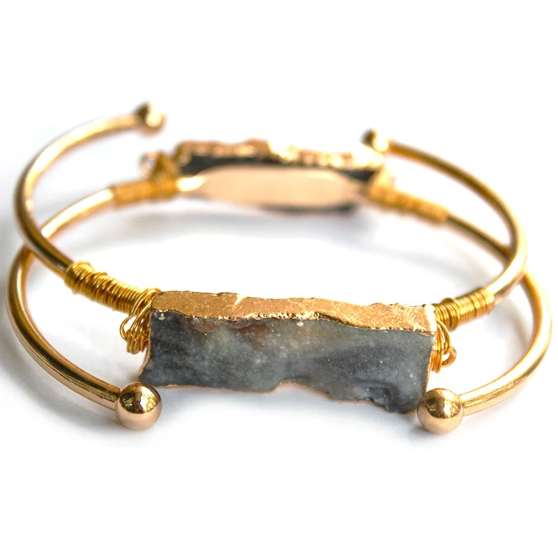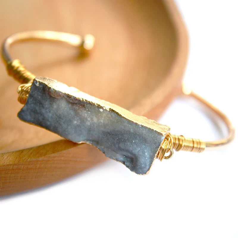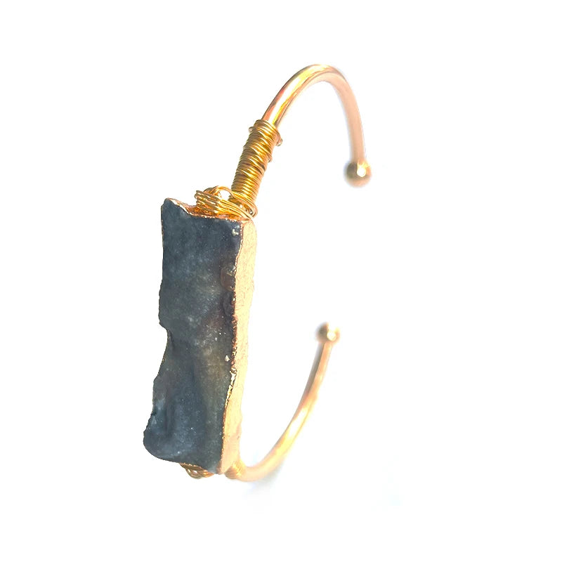 Wire Wrapped Sun Agate Galaxy Adjustable Cuff Bangle Bracelets Chakra Crystal Handmade Jewelry